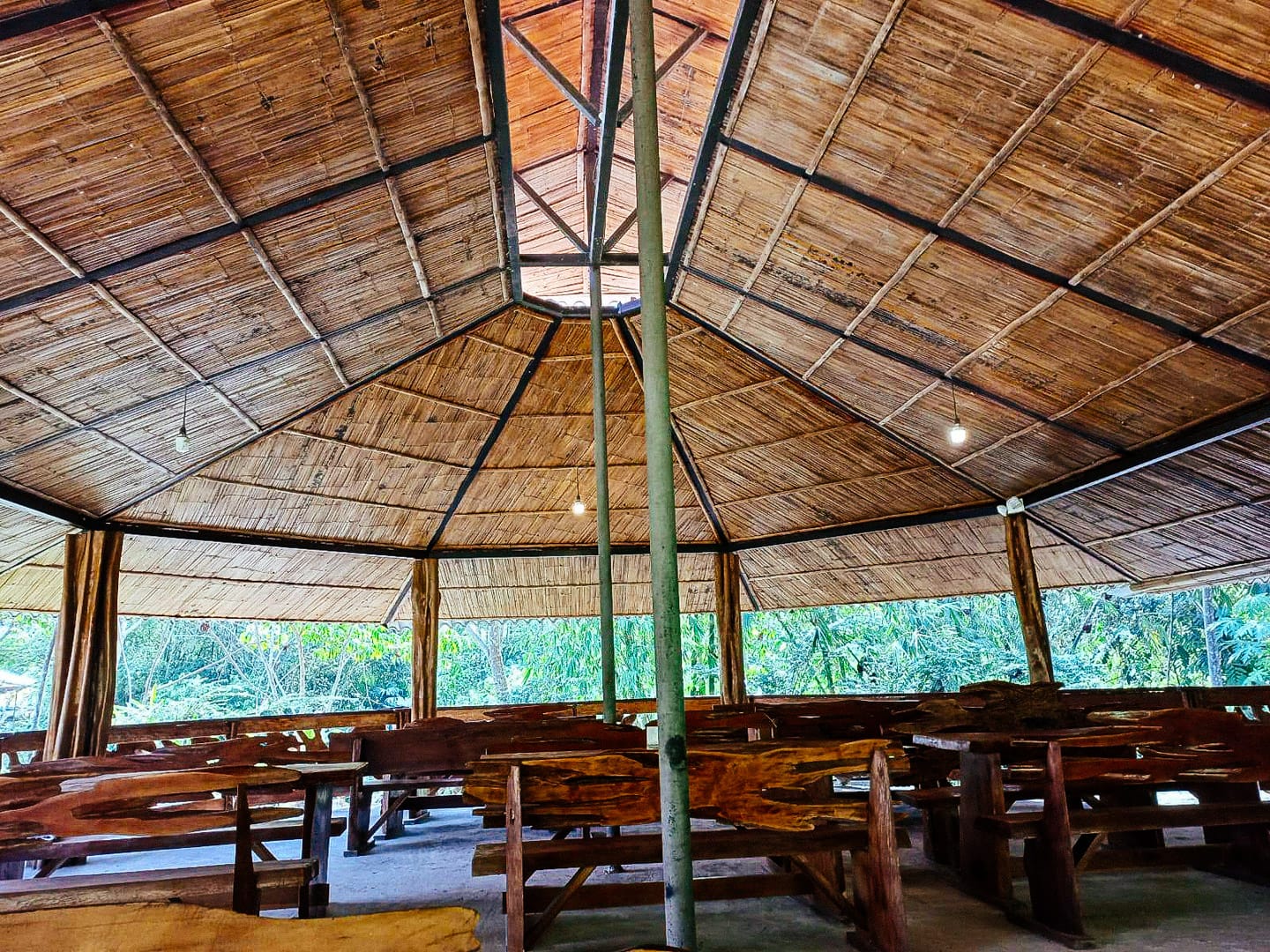 Rodeado de densa vegetación en una zona aislada de la ciudad para encontrar nuestra propia paz y amor con la naturaleza, por las noches los sonidos de la selva se alzan y te acunan entre sonidos de la naturaleza para tu descanso.